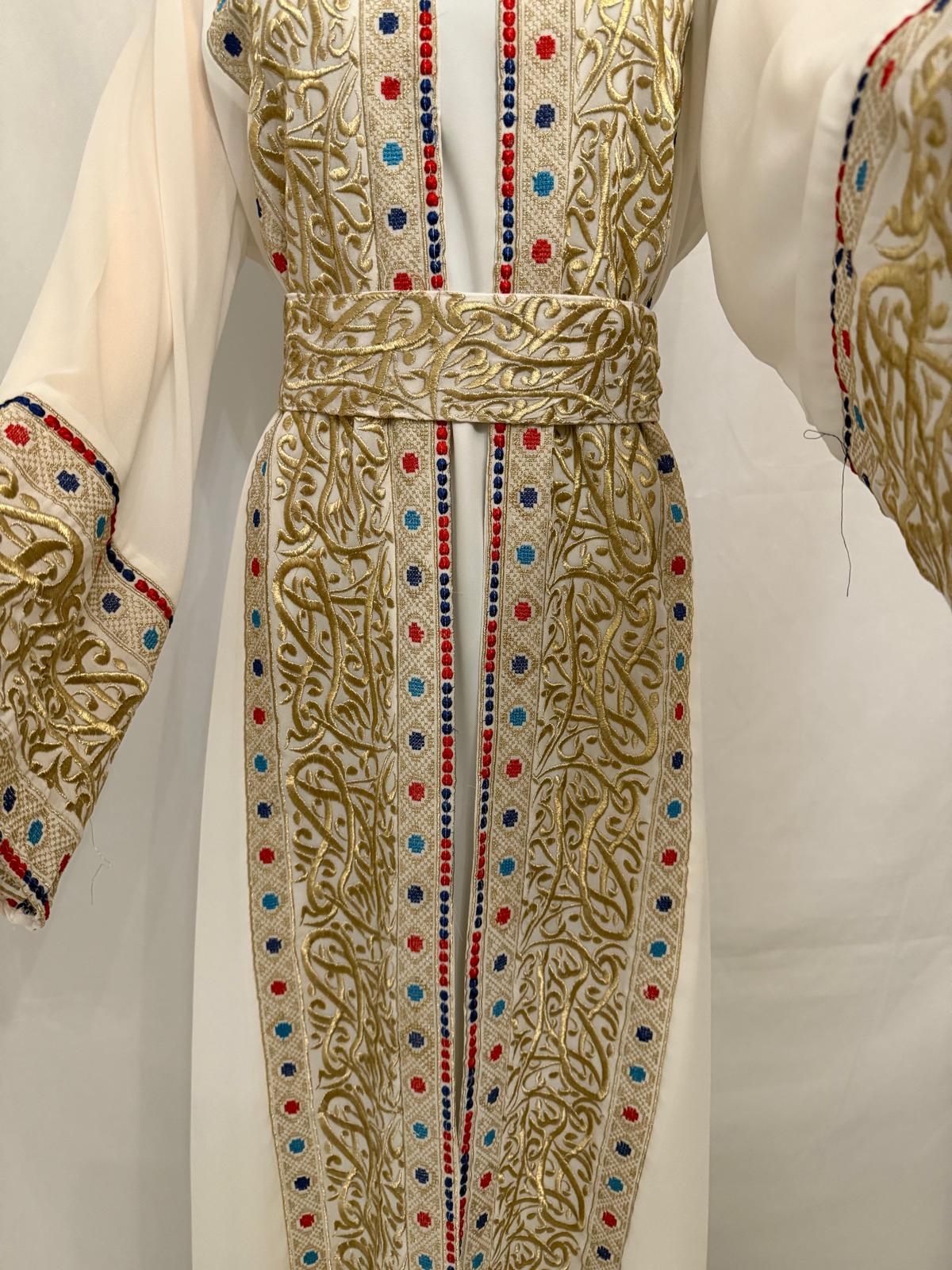 Formal Chiffon Abaya (Gold Embroidery with Colorful Accents)